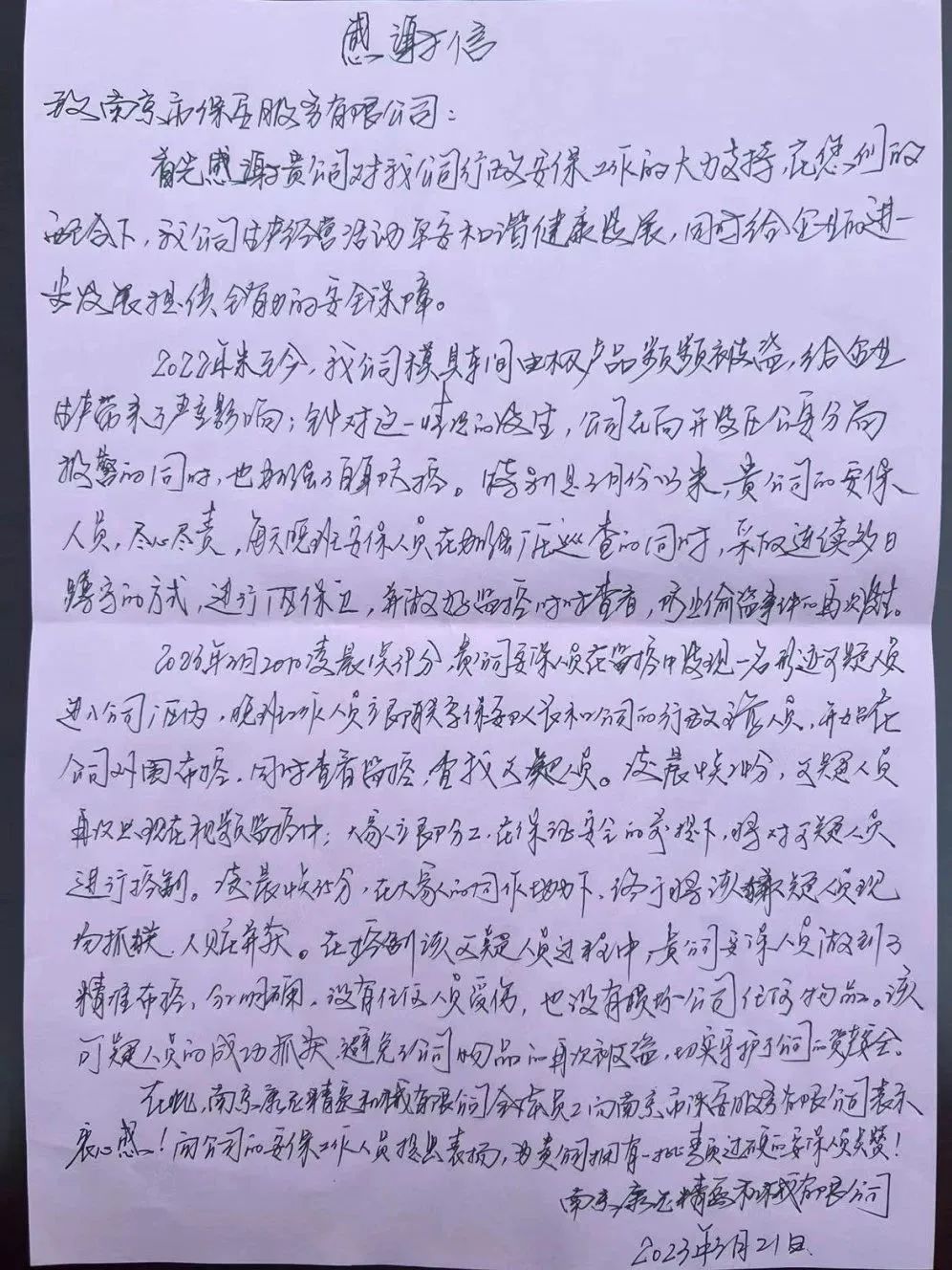 勇擒竊賊保平安 客戶表彰贊譽(yù)高